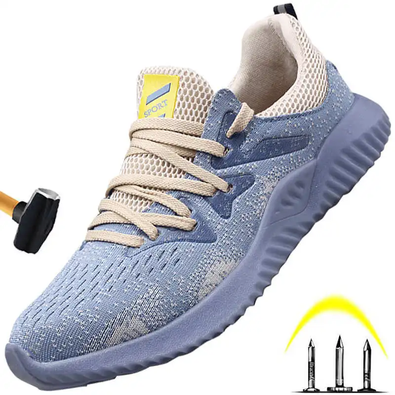 Plus size men casual breathable summer mesh steel toe caps work safety shoes anti-pierce Constructi